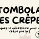 TOMBOLA DES CRÊPES TOMBOLA DES CRÊPES Accueil » Prunay > Ecole > Informations » SUPER TOMBOLA DES CRÊPES Participez pour gagner le nécessaire pour une crêpe party... Page publiée le 08/02/2024 Mise à jour le 06/04/2026 Vue 273 fois